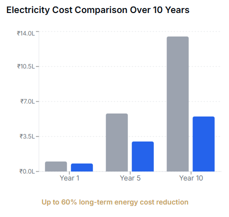 Solar systems combined with energy storage and intelligent monitoring dramatically reduce electricity costs over time.